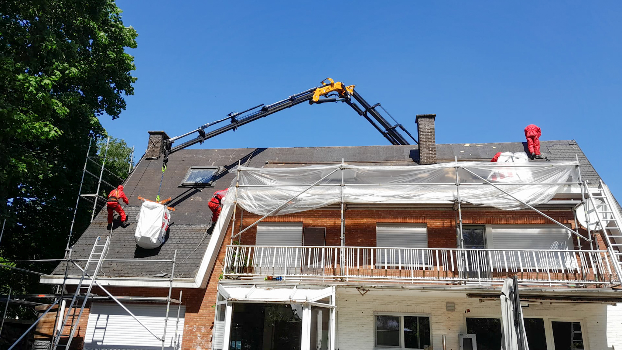 Heb je een kraanwagen mét kraanman nodig voor het uitvoeren van dakwerken? Andere dakwerkers, aannemers of asbestverwijderaars huren onze kraanwagen (VOLVO FH500 met Effer 1000/9 en Fly JIB) voor hun eigen opdrachten. Onze kraan heeft een reikwijdte van 30 meter. Dankzij de vacuümklem met dubbele motor tillen en plaatsen we eenvoudig en veilig sandwichpanelen. Bij het verwijderen van golfplaten in asbest gebruiken we een palletvork voor het stapelen op hoogte.